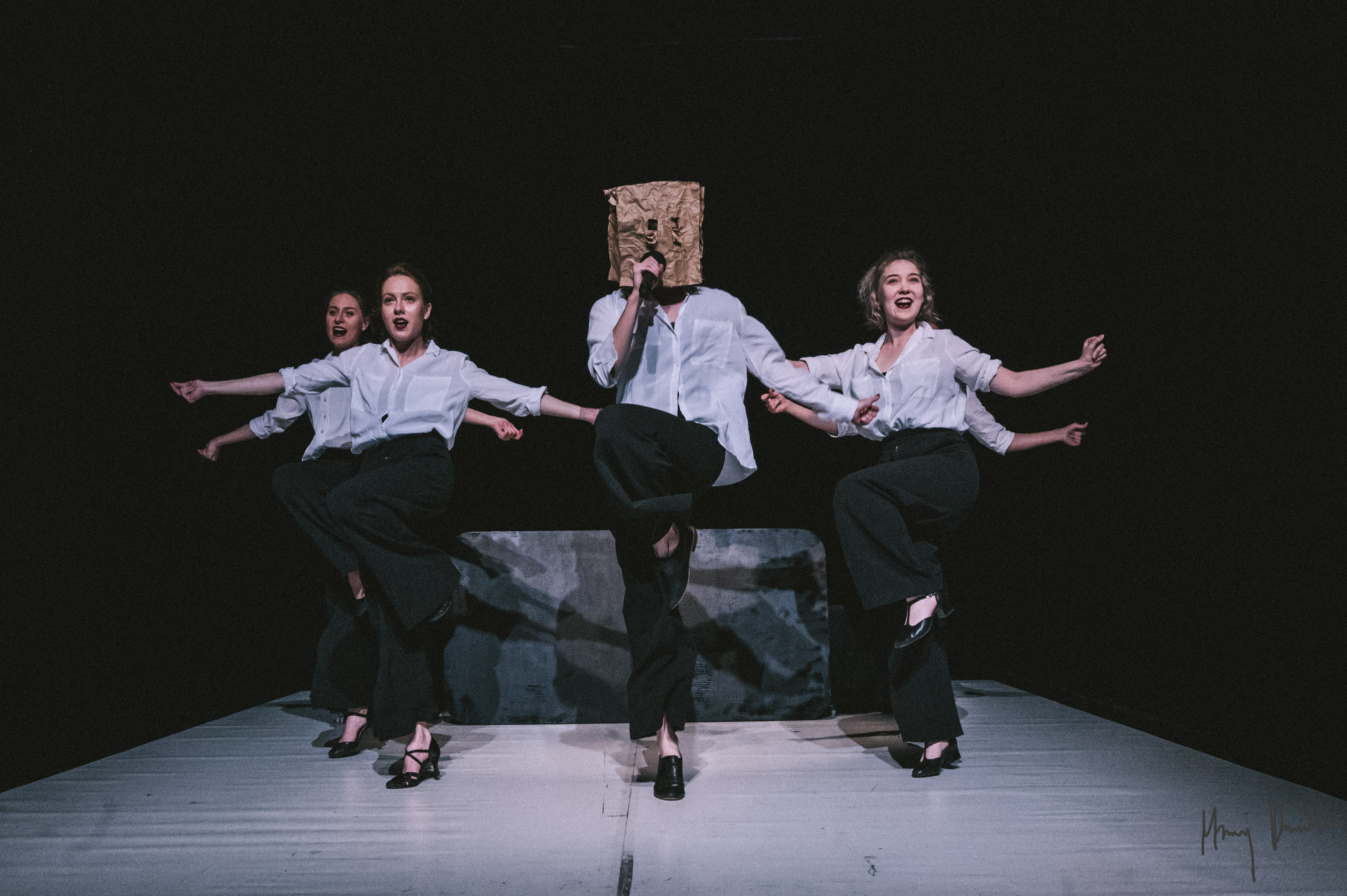 Pięć niezwykłych kobiet. Ladacznica, Czarownica, Święta, Głupia Gęś i Matka. Pięć historii, które łączy jeden wspólny mianownik – wina, która przesądza o wszystkim. Pięć szablonów, które przetrwały w naszym języku, naszej kulturze i niejednokrotnie warunkują nasz sposób myślenia. Z drugiej strony, pryzmat historii to nie wszystko, bo świat nie stoi w miejscu, lecz biegnie w szaleńczym tempie. W dobie postępu świadomości, kiedy wiemy sami o sobie więcej niż kiedykolwiek wcześniej, znajduje się coraz więcej przestrzeni do kolejnych rozważań. Bo im więcej wiesz, tym więcej jeszcze musisz się dowiedzieć. To nie jest spektakl o feminizmie. To nie jest spektakl o religii. To jest spektakl o tym co pomiędzy.